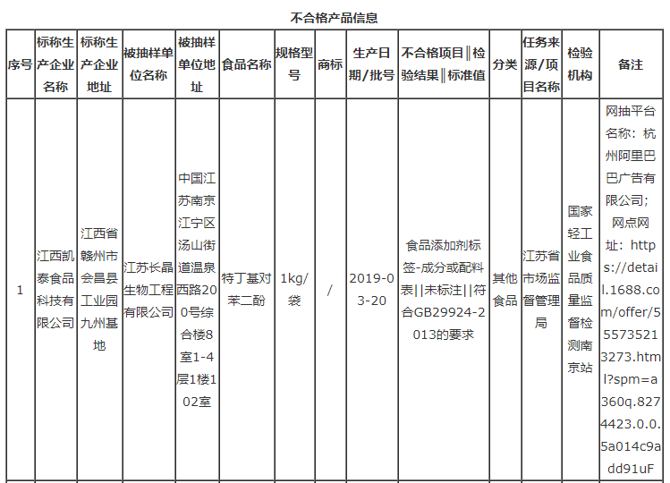 3月24日,江蘇省市場監(jiān)督管理局發(fā)布2021年第16期食品安全抽檢信息,江蘇省市場監(jiān)督管理局完成省級(jí)食品安全監(jiān)督抽檢任務(wù)891批次,涉及糧食加工品、調(diào)味品、肉制品、豆制品、糕點(diǎn)、食用農(nóng)產(chǎn)品、嬰幼兒配方食品和其他食品,檢出不合格樣品9批次。&...[詳情]